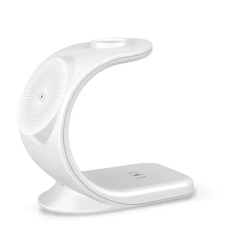 Praktische Ladestation für unterwegs, Büro oder Zuhause. Lädt iPhone, Apple Watch und AirPods gleichzeitig schnell und kabellos.