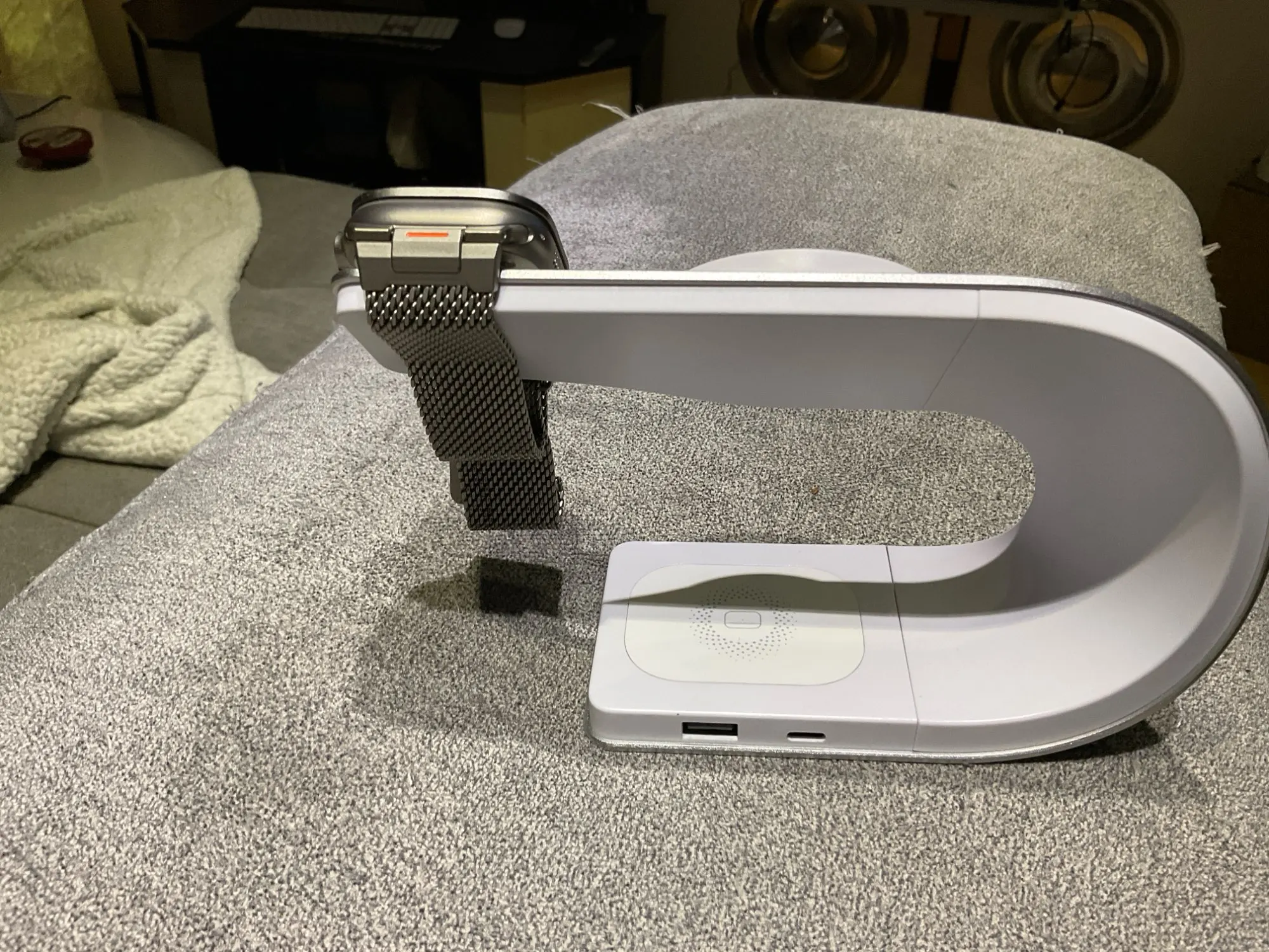 Also ich muss wirklich sagen er ist sehr stabil. Verarbeitung ist auch gut drei Dinge gleichzeitig laden funktioniert auch und was ich besonders toll finde ist dass meine Apple Watch mit einem schweren Stahlarmband auch hält..