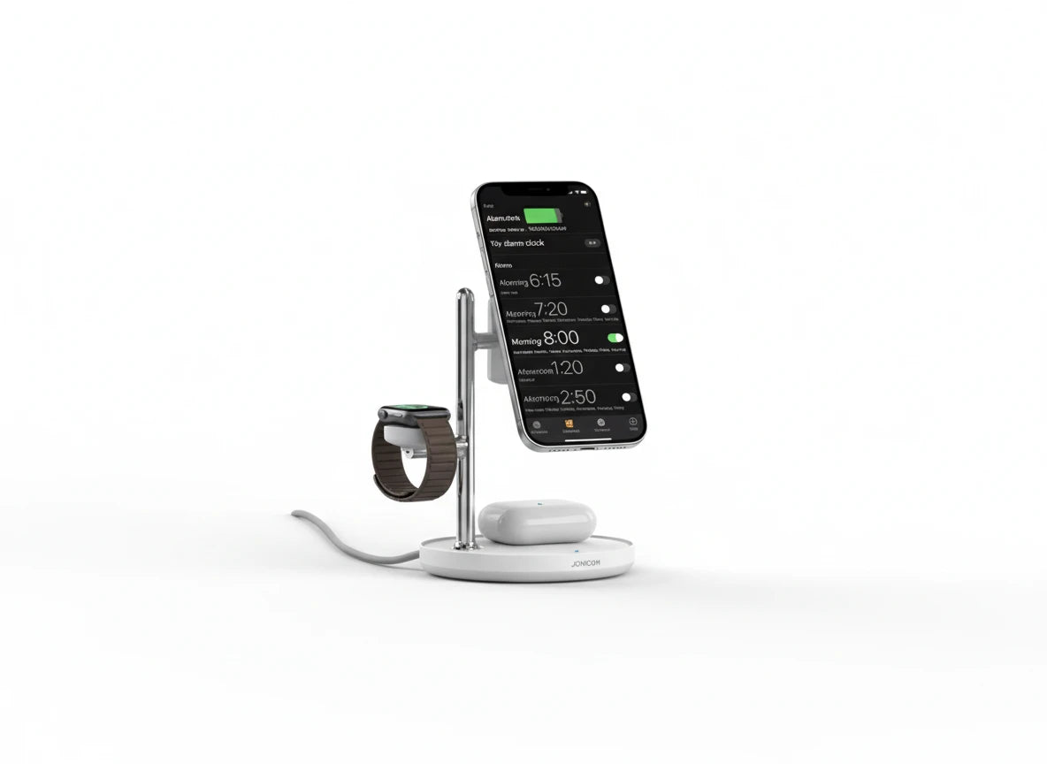Die JOYROOM Qi2.0 Schnellladestation lädt iPhone, Apple Watch und AirPods gleichzeitig – sicher, schnell und elegant.