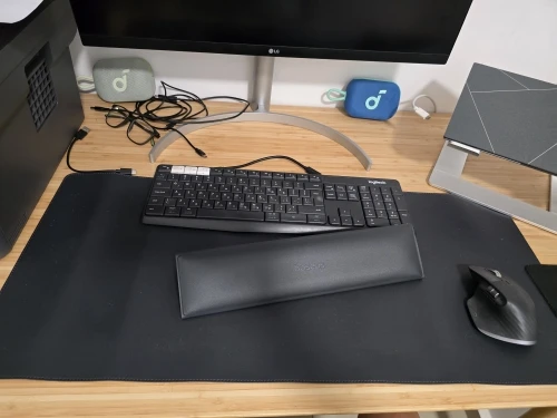 Die integrierte Handgelenkstütze reduziert Druck und Ermüdung bei längerer Maus- oder Tastaturnutzung und unterstützt eine natürliche Handhaltung.