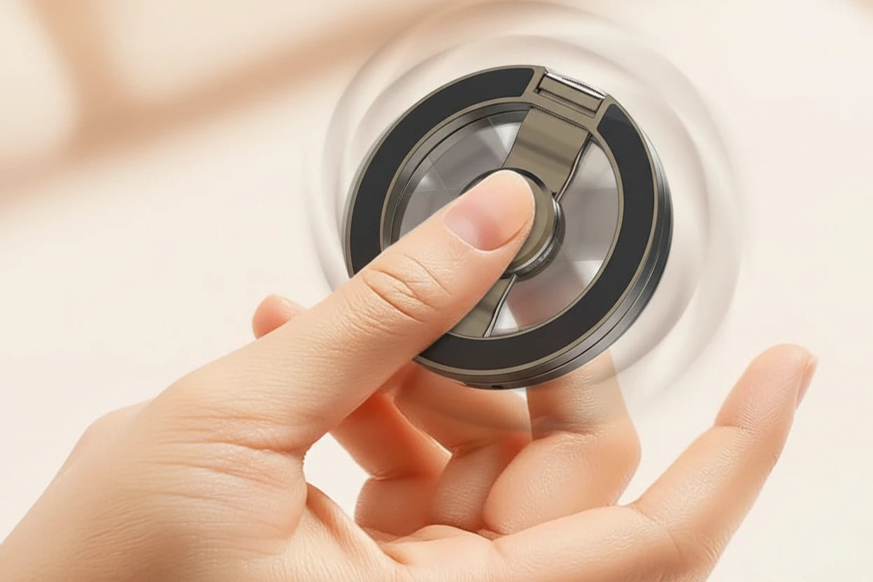 Ich habe einen weiteren MagSafe-Ringmagneten gekauft, anders als dieser. Aber ich wollte einen Magneten haben, der größer ist als der andere, den ich bekommen habe. Dieser ist viel stärker als der andere, hauptsächlich weil der Ring bei diesem größer ist. Hält bombenfest, sowohl am Handy als auch an Metallwänden oder -oberflächen. Die Scharniere sind wirklich gut, sie halten wirklich an Ort und Stelle. Ich habe zwei davon gekauft, eines als Reserve, da der Preis wirklich gut war. Einer der Spinner hat wirklich gut funktioniert, der andere schon nicht so. Ich habe gelesen, dass man die Kugellager mit Isopropylalkohol reinigen und mit Druckluft trocknen kann. Nachdem ich es mit Reinigungsalkohol gereinigt hatte, drehte es sich fast genauso gut wie das, das schon mal gut gedreht hat. Gute Produktanwendung, der Spinner ist ein nettes Extra zum Spielen. Aber ich liebe dieses kleine Gerät!