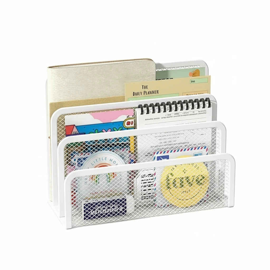 Der Desktop Mail Organizer ist die perfekte Lösung, um Ihren Schreibtisch ordentlich und übersichtlich zu halten. Mit 3 vertikalen Fächern können Sie Dokumente, Briefe, Zeitschriften und Mappen bequem sortieren. Das offene Netzdesignsorgt für gute Belüftung und verhindert Staubansammlungen.