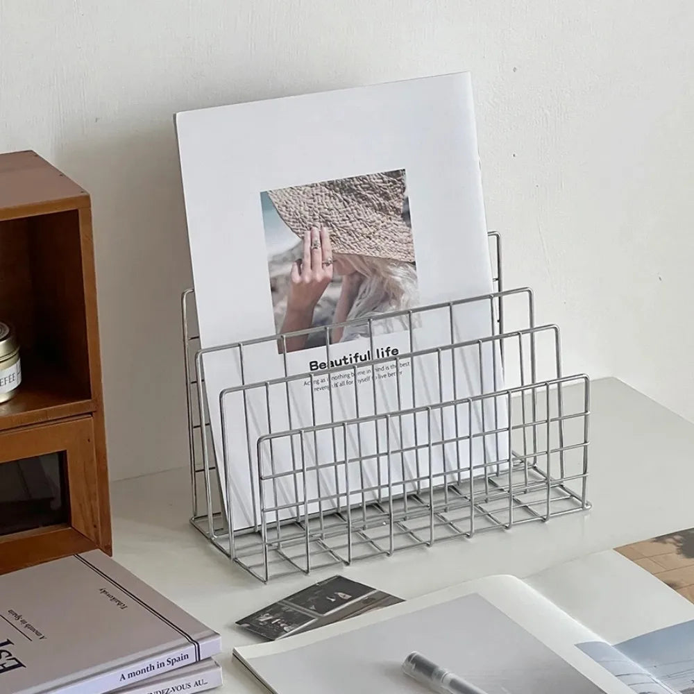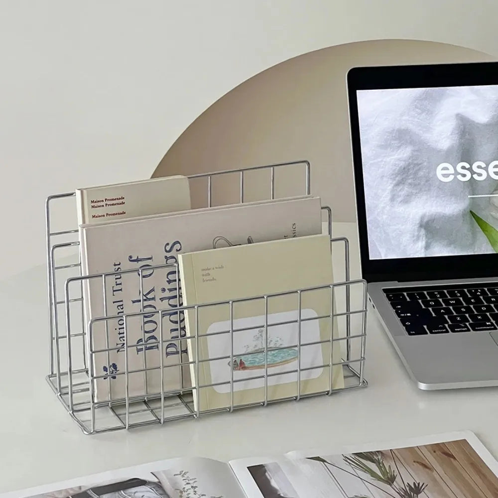 Dieses minimalistische Desktop-Aufbewahrungsregal aus hochwertigem Eisen sorgt für Ordnung auf jedem Schreibtisch. Das moderne, offene Design passt ideal ins Büro, Home-Office oder Arbeitszimmer. Perfekt, um Bücher, Dokumente, Kosmetik, kleine Pflanzen, Technikzubehör oder Deko übersichtlich zu organisieren.