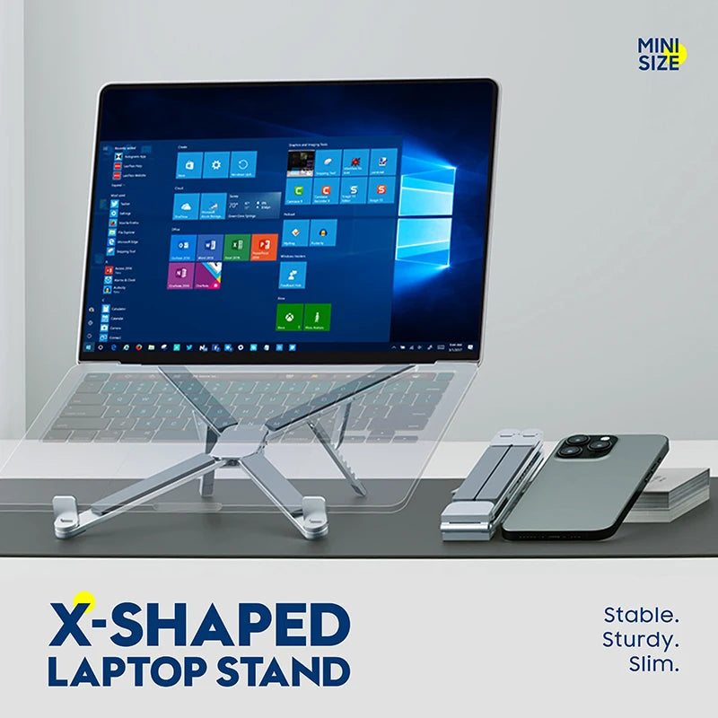 Dieser tragbare Laptop-Ständer bietet eine ergonomische Arbeitsposition – ideal für Büro, Homeoffice oder unterwegs. Dank seines leichten Aluminiumdesigns und der klappbaren Konstruktion lässt er sich einfach transportieren und sorgt gleichzeitig für eine stabile und angenehme Laptop-Nutzung.
