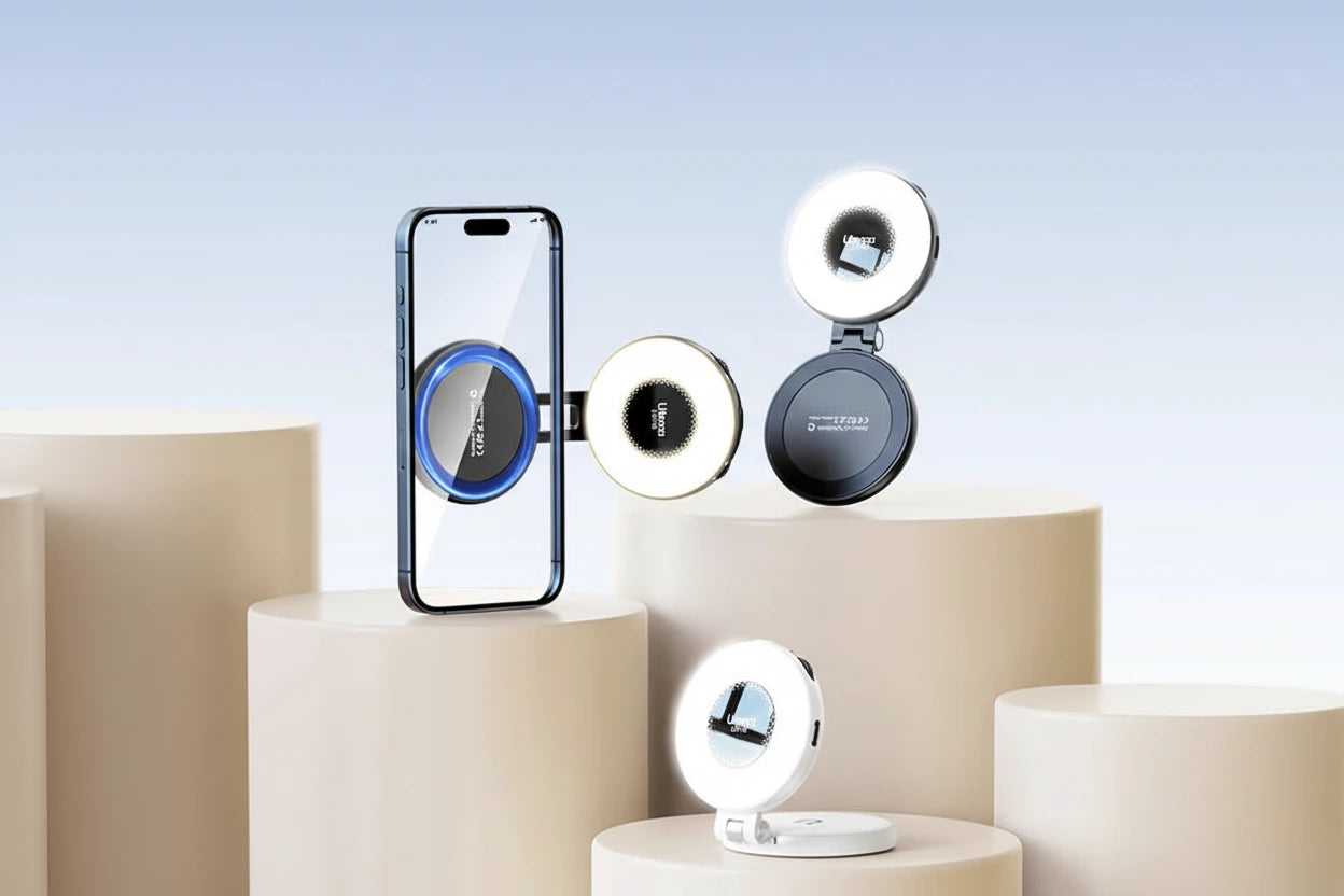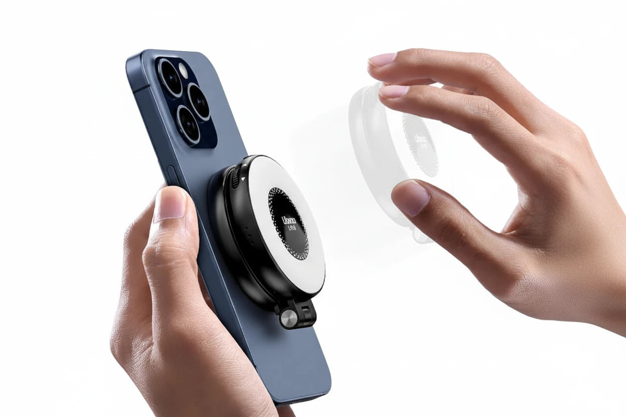Das Ulanzi LM19 MagSafe Licht ist ein kompaktes, magnetisches LED-Fill-Light für Vlogging, Livestreams und Fotografie. Mit einem CRI von 95+ sorgt es für natürliche, realistische Farben. Dank MagSafe-Magnetbefestigunghaftet das Licht sicher an kompatiblen Smartphones und lässt sich flexibel einsetzen. Das klappbare Design ermöglicht optimale Ausleuchtung aus verschiedenen Winkeln – ideal für Content-Creator unterwegs.